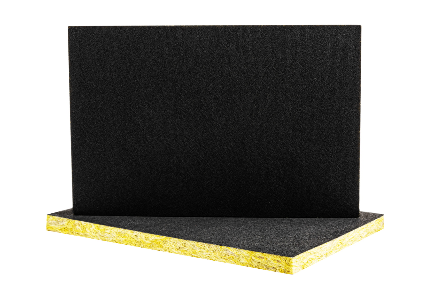 - основа плиты - каменная вата - материал с наивысшими акустическими свойствами, - лицевая часть - стеклохолст - нетканый материал с красивой ровной матовой текстурой, обеспечивающей максимальный визуальный комфорт.